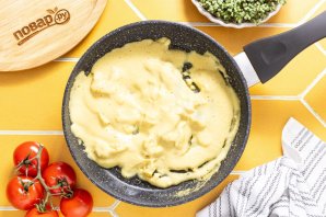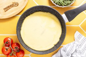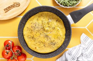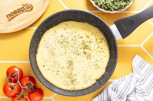 Накройте крышкой и готовьте примерно 5-7 минут, пока омлет не пропечется внутри.