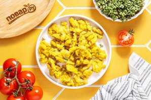 Скрэмбл можно перед подачей посыпать зеленью. Я добавляю немного микрозелени.
