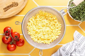 После слейте воду, а маш тщательно промойте. Откиньте на сито и дайте стечь лишней жидкости.