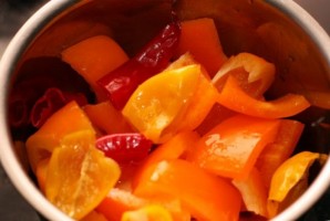 Полийте шматочки перцю лимонним соком і потушіть протягом 10 хвилин на середньому вогні.