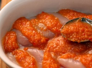 Полийте ними курячі грудки та запікайте в духовці протягом півгодини. Подавайте до столу з вареним картоплею та свіжими помідорами.