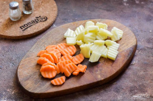 Очистіть усі овочі, наріжте моркву та картоплю невеликими шматочками.