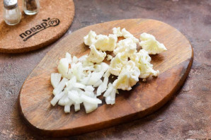 Цибулю очистіть і наріжте невеликими кубиками. Квіткову капусту розберіть на суцвіття.