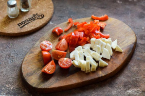 Селеру наріжте смужками, перець наріжте смужками, помідори розріжте навпіл або наріжте дольками, якщо томати великі.