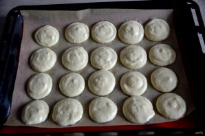 Переложите тесто в кондитерский мешок и выложите тесто на шаблон, слегка встряхните, чтобы тесто улеглось. Разогрейте духовку до 180 градусов.