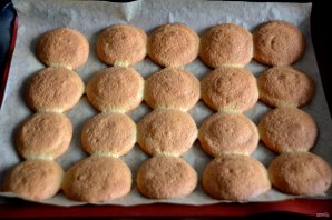 Снимите бисквитную основу с пергамента, соедините попарно.