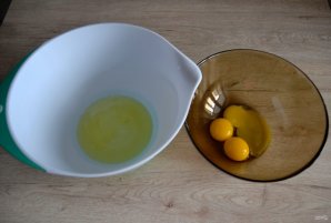 Отделите белки и желтки 3 яиц в разную посуду.