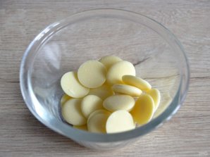 Растопите в микроволновой печи белый шоколад, переложите его в кондитерский мешок.