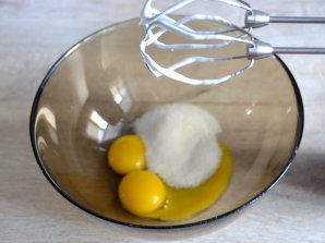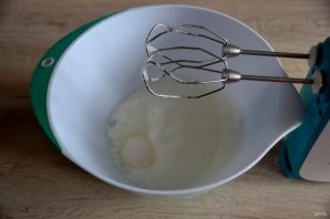Взбейте желтки с оставшимся сахаром до побеления.