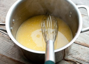 2. Висипте крупу, постійно помішуючи. Варіть на дуже слабкому вогні близько 15 хвилин, постійно перемішуючи.
