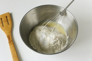 Перемешайте. Добавьте муку и соду.