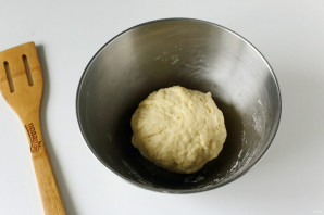 Замесите мягкое тесто, которое не липнет к рукам. Соберите его в шар, накройте полотенцем и оставьте на 20 минут.