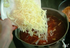 Через 10 хвилин додаємо в каструлю капусту. Продовжуємо варити.