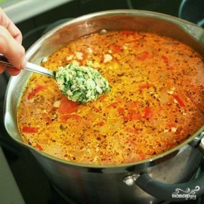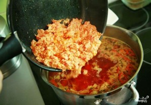 Нарешті, додаємо в каструлю нашу заправку. Варимо ще 1-2 хвилини, після чого знімаємо з вогню, накриваємо кришкою і даємо настоятися принаймні 10-15 хвилин.