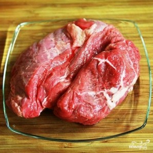 Шматок м'яса промиваємо під протічною водою. Беремо каструлю, кладемо туди м'ясо, заливаємо двома літрами води і варимо бульйон приблизно 30-40 хвилин.