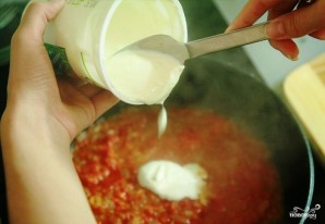Добре перемішуємо і залишаємо тушилися. Коли вершки повністю випаруються, а на поверхні підсмажки з'явиться шар напівпрозорої олії, знімаємо підсмажку з вогню.