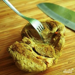 Тим часом шматок м'яса потрібно вийняти з бульйону.