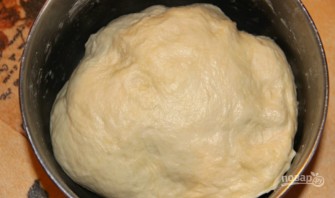 В муку влейте растительное масло и теплую воду. Добавьте соль и замесите эластичное тесто, которое, кстати, абсолютно не липнет к рукам. Оставьте под пленкой на 30 минут, а затем разделите на 12–15 кусочков.
