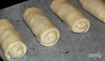 Трубочки разложите на противне, выстланном пергаментом. Выпекайте пирожки при температуре 180 градусов в течение 30–40 минут.