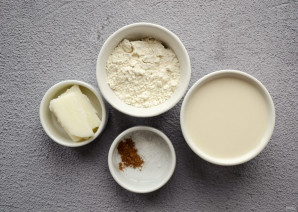Влийте соєве молоко. Додайте мускатний горіх і сіль.