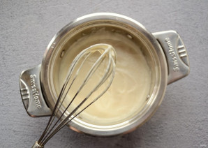 Постійно перемішуйте соус вінчиком до загуснення. На це знадобиться буквально кілька хвилин.