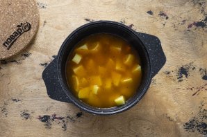 У каструлі з товстим дном розігрійте рослинну олію. Підсмажте моркву 2-3 хвилини до золотистого кольору.