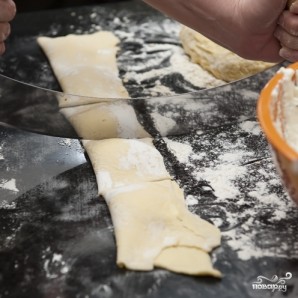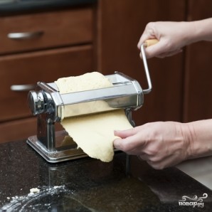 8. Тепер потрібно розкатати досить тонке тісто. Можна робити це скалкою, а можна скористатися спеціальним пристроєм для приготування тіста.