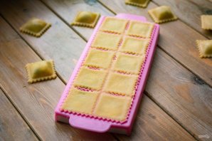 Для формовки равиолей я использую в работе вот такую форму — это очень удобно.