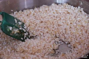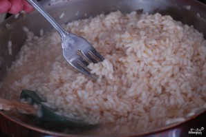 Повторяем процедуру до тех пор, пока рис не будет готов. Подливать бульон нужно по чуть-чуть, по половнику, если налить его весь сразу - ничего не получится. Готовность риса определяем дедовским методом - пробуем на вкус.