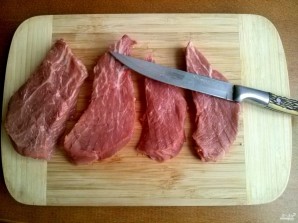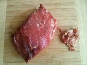 Гов’ядину обмиєте і зачистіть від сухожиль та плівок.