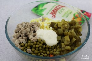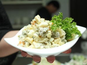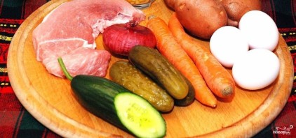 Який же Новий рік без салату Олів'є? Цей салат Олів'є зі свининою виходить дуже смачним. Готується він з традиційних інгредієнтів, але на основі свинини.
