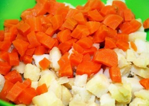 3. Також окремо варимо картоплю, моркву, яйця. Після цього даємо овочам охолонути.