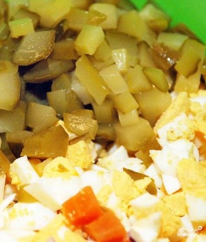 5. Нарізаємо солоні та свіжі огірки та яйця.