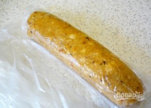 6. На харчову плівку викладаю щербет, скочую масу в рулет, відправляю на кілька годин у холодильник, а потім уже нарізаю шматочками і подаю до столу.