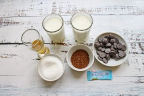 Приготуйте всі необхідні інгредієнти для приготування шоколадно-кавового десерту.