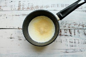 У сотейнику з'єднайте молоко та желатин, залиште набухати на 30 хвилин.