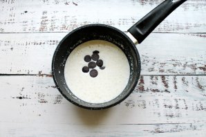 Додайте до суміші з желатином шоколад і нагрівайте на повільному вогні, постійно помішуючи, доки желатин і шоколад повністю не розчиняться. Має утворитися однорідна маса, повністю охолодіть.