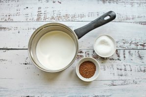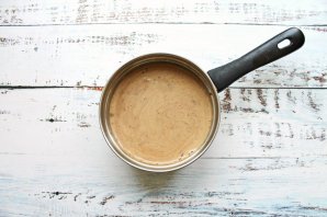 У іншу сотейник влийте вершки, додайте цукор і розчинну каву.