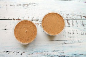 У сотейник з кавовою масою влийте шоколадну, кон'як і трохи перемішайте. Перемішувати до однорідності або збивати не потрібно.