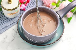 Тому відразу поставте ємність на плиту та підігрійте молоко 1-2 хвилини, поки какао-порошок чудово не розчиниться. Потім зменшіть нагрівання до середнього та перемішуйте всю масу.
