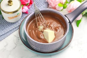 Тушкуйте крем до загущення. На це знадобиться від 5 до 8 хвилин. Після чого вимкніть нагрівання і введіть у крем вершкове масло хорошої якості.