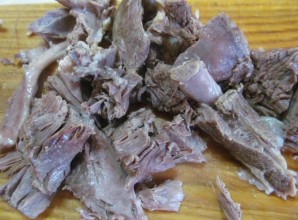 М’ясо нарізаємо шматочками, повертаємо назад у шурпу.