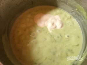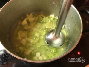 4. Збийте все блендером прямо в каструлі разом із водою, в якій варилася брокколі.