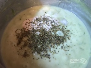 6. Додаємо до соусу італійські спеції, сіль і перець за смаком. Перемішуємо і знову збиваємо блендером.