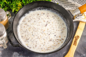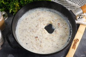 Влийте вершки і відразу перемішайте, щоб не утворилися грудочки.