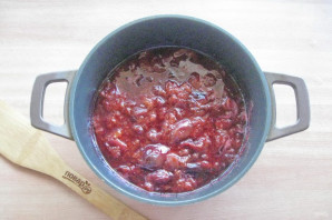Когда повидло хорошо загустеет и содержимое кастрюли уменьшится вдвое от начального количества, повидло будет готово. Мое повидло варилось 3 часа.