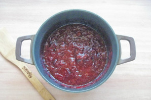 Горячее повидло разложите в стерилизованные банки и закатайте крышками. Подавайте на десерт к чаю, оладьям, блинам.