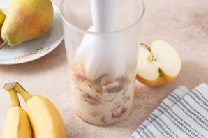 Груші та яблуко помийте, за бажанням можна очистити фрукти від шкірки. Видаліть серцевину та наріжте середніми шматочками.