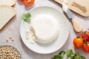 Нагрійте соєве молоко до 85 градусів, влийте в нього яблучний оцет. Перемішайте, накрийте кришкою і залиште на 1 годину. Молоко почне розділятися на творожну масу та сироватку.