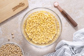 Соєві боби попередньо замочіть на ніч. Потім промийте та переберіть їх.